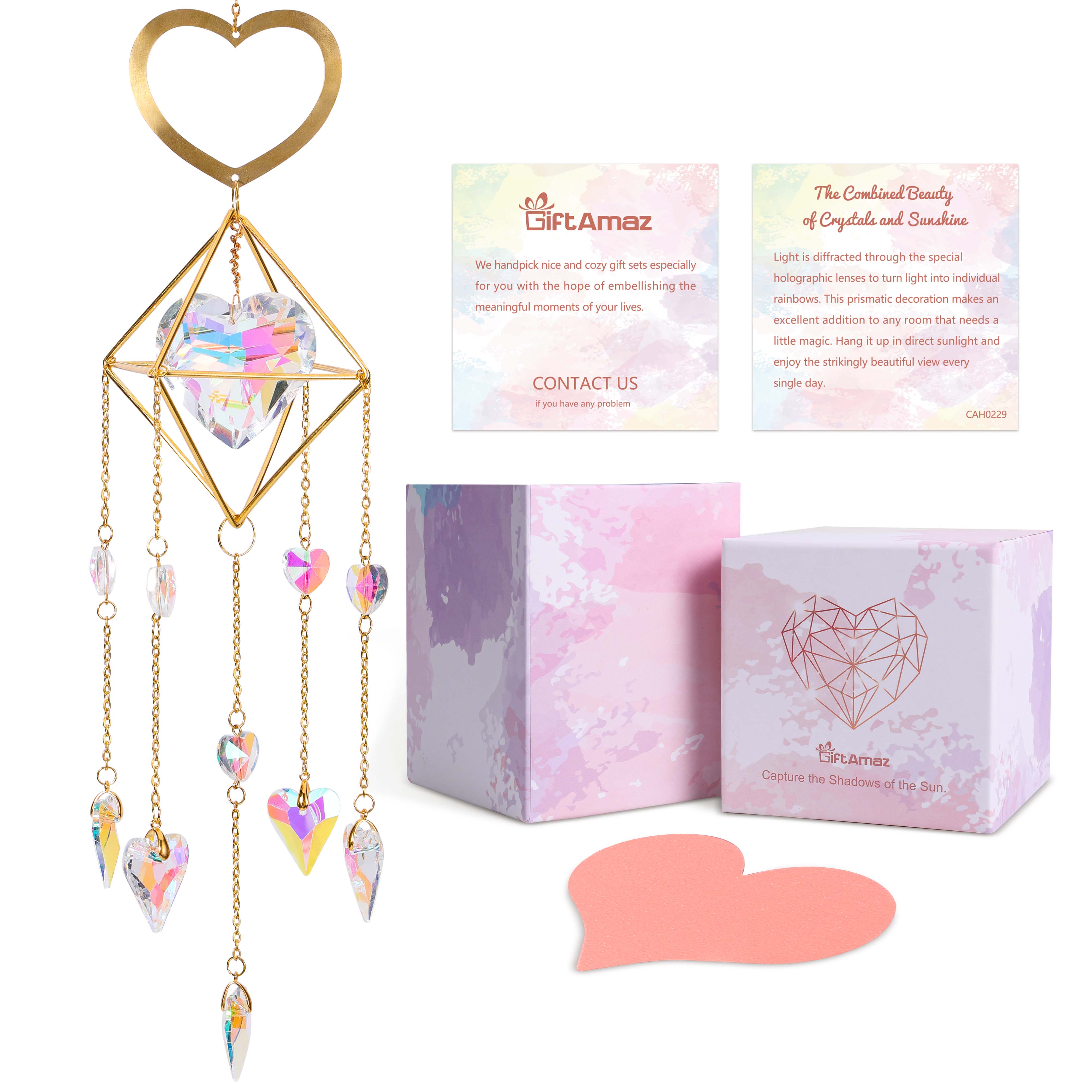 GiftAmaz Heart Sun Catchers with Crystals, Window Hanging Prism Rainbow Maker Chandelier Crystal Pendant Ornament Suncatcher Gift for Women Home Indoor Wedding Anniversaries Decoration